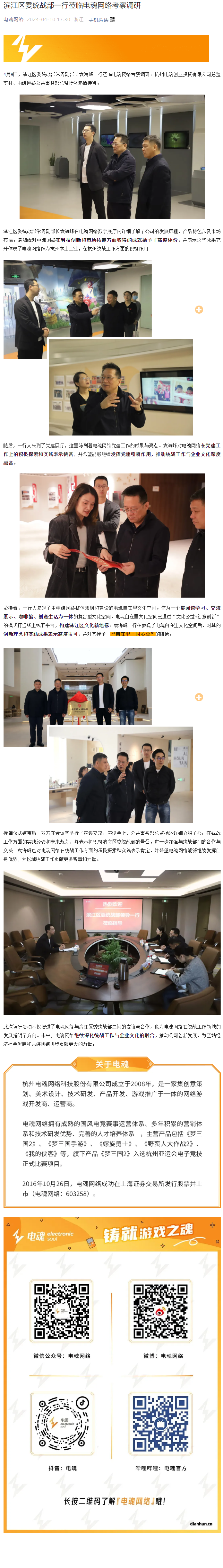 濱江區委統戰部一行蒞臨電魂網絡考察調研